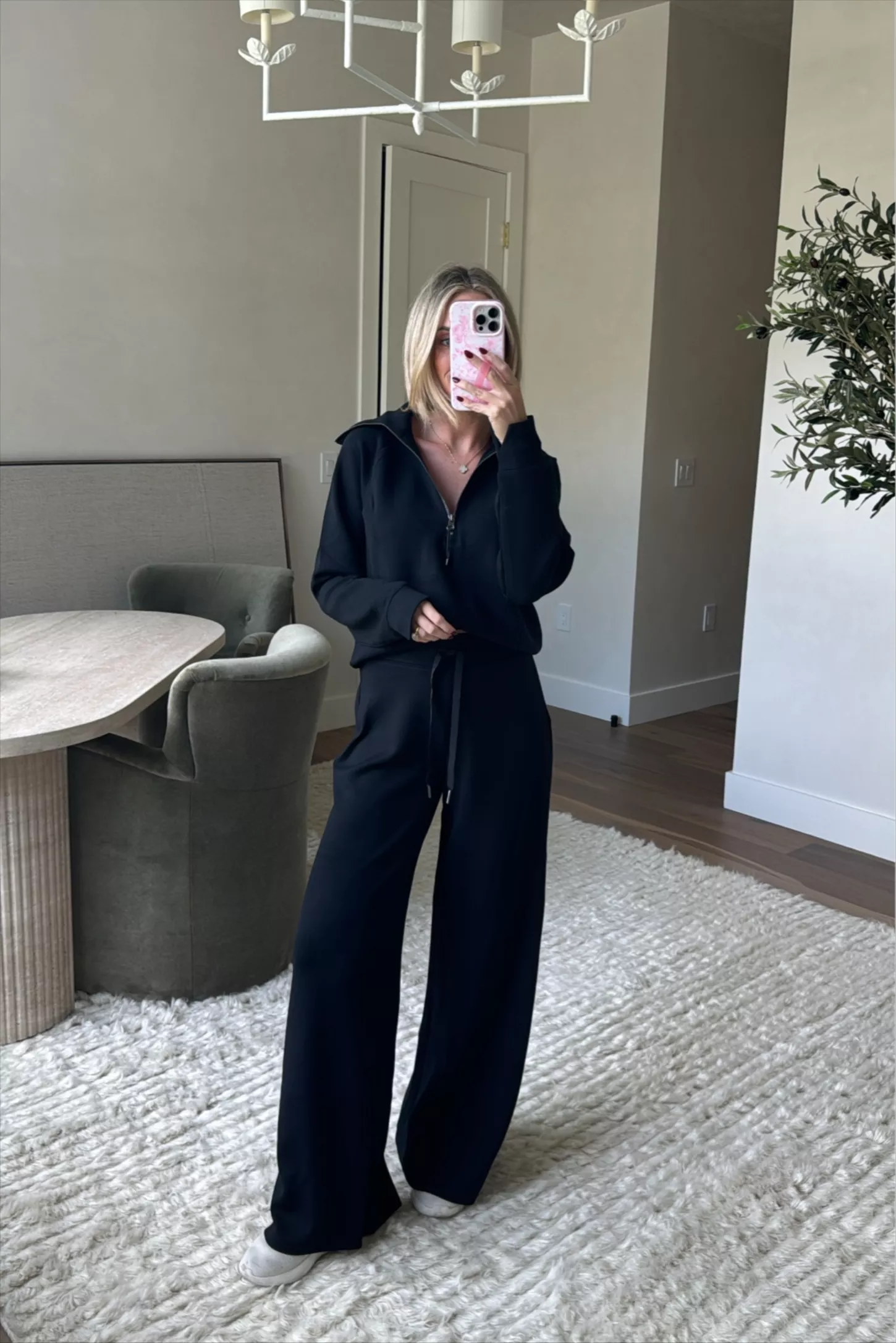 The relaxed fit and wide-leg cut give a leg-lengthening effect, creating a sleek, elongated silhouette that moves with you.