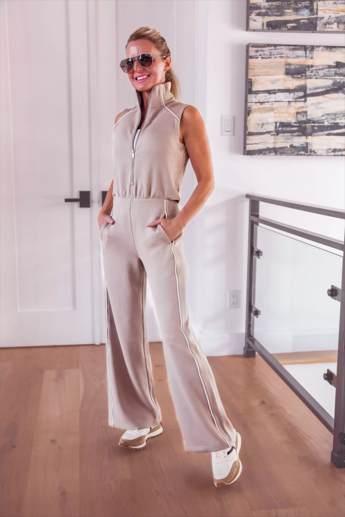 An easy, relaxed fit and distinctive striped details for a sporty look, this jumpsuit is perfect for all-day wear—whether you're traveling, running errands, or lounging at home.