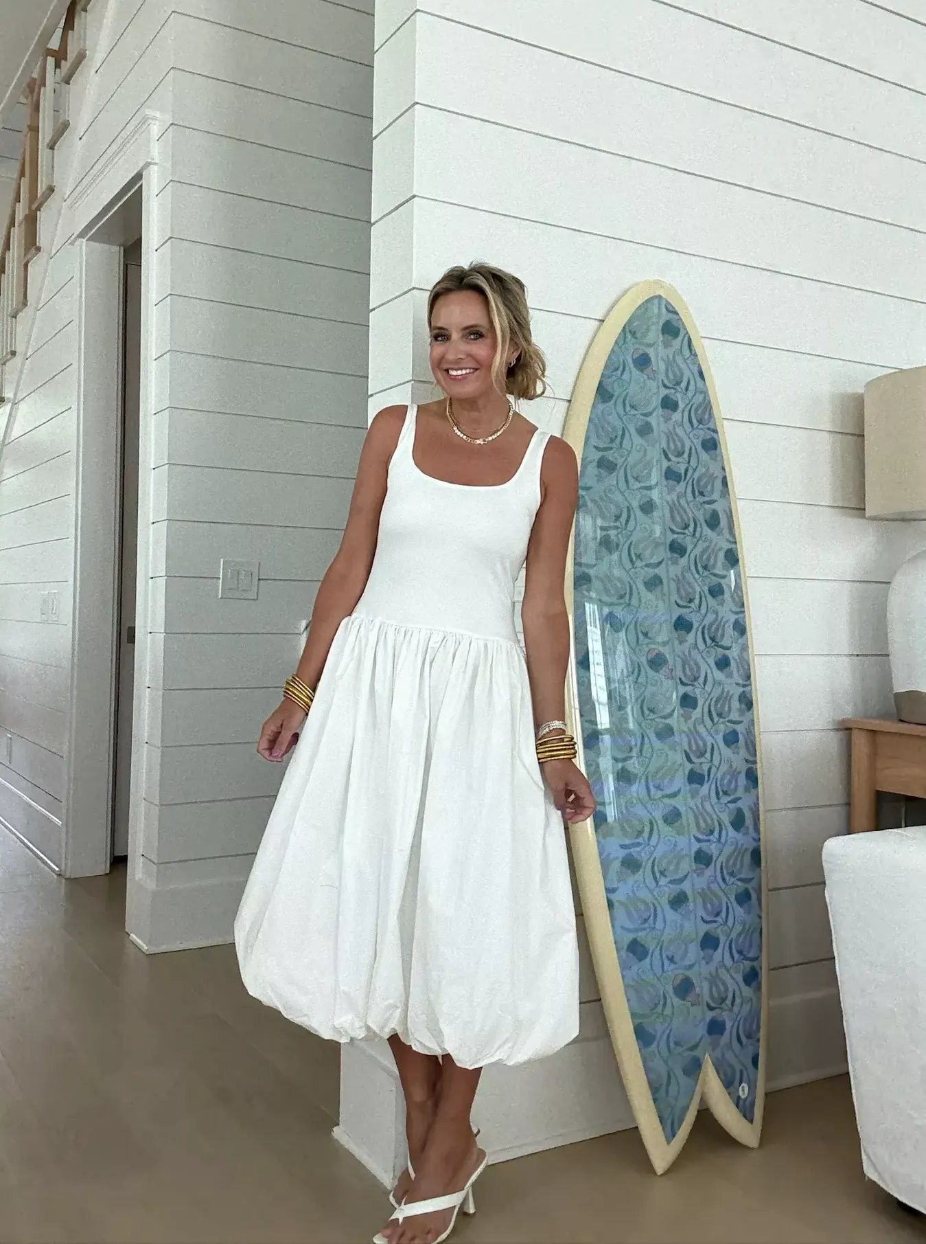 Whether styled with strappy sandals for brunch or dressed up with heels and jewelry for a summer event, this bubble hem midi makes a statement without trying too hard.