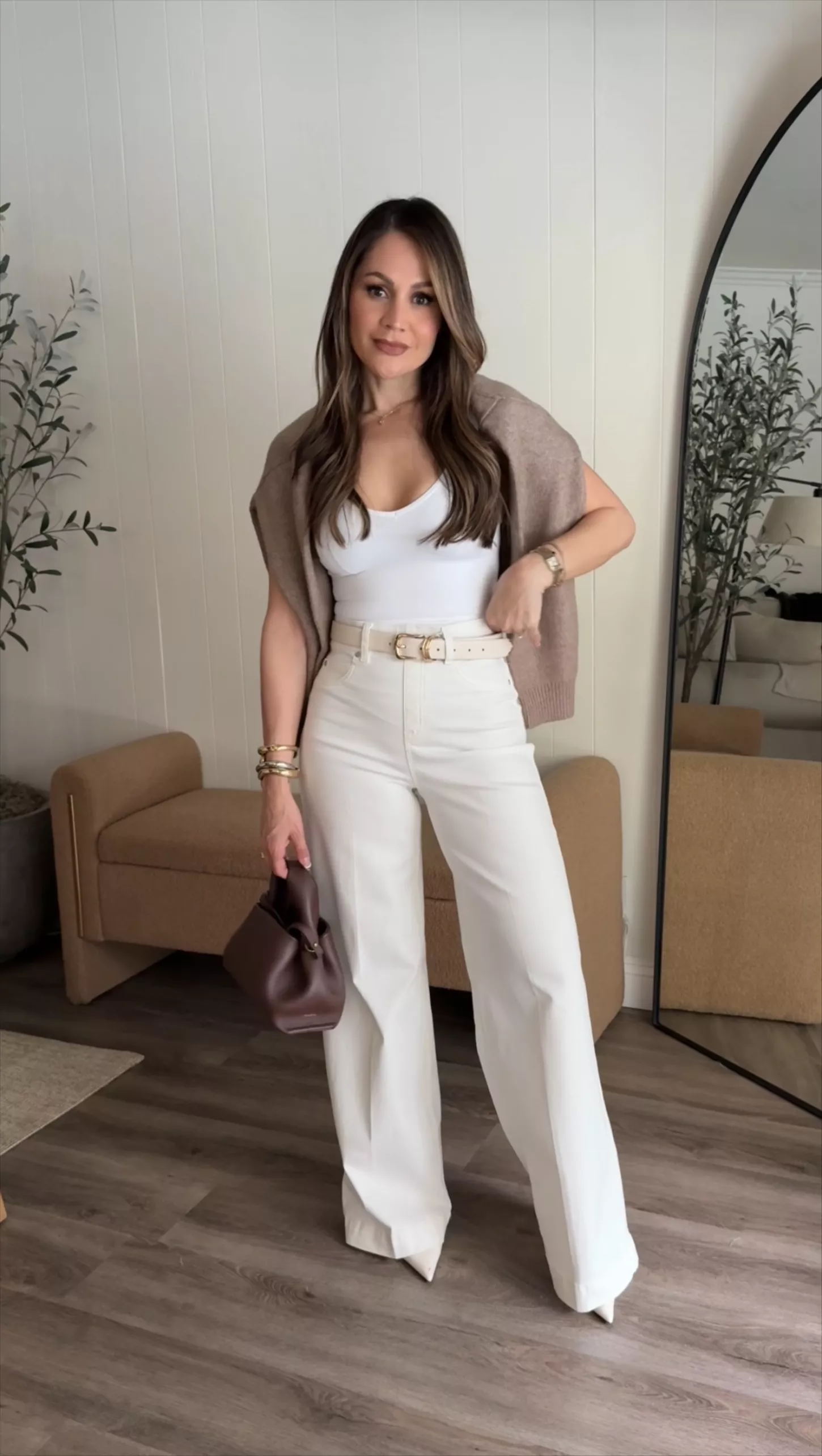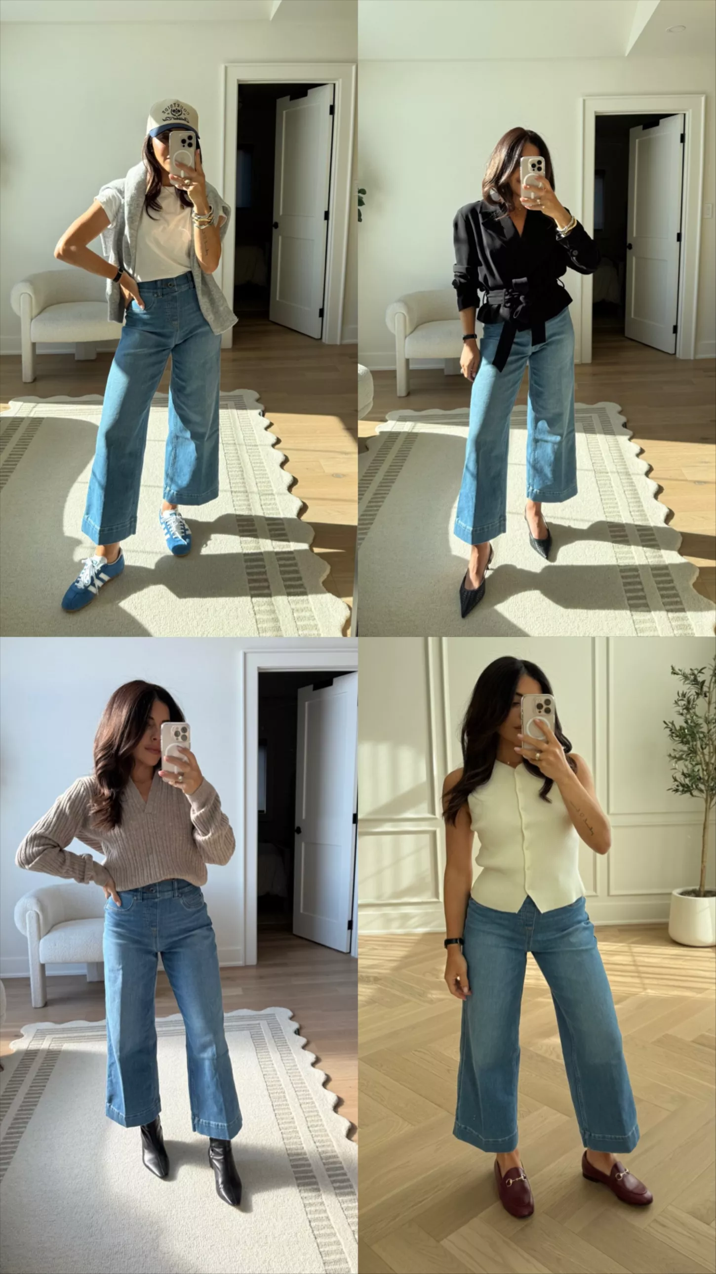 Wide Leg Style: Fitted through hips transitioning to a loose, leg-lengthening wide leg silhouette.