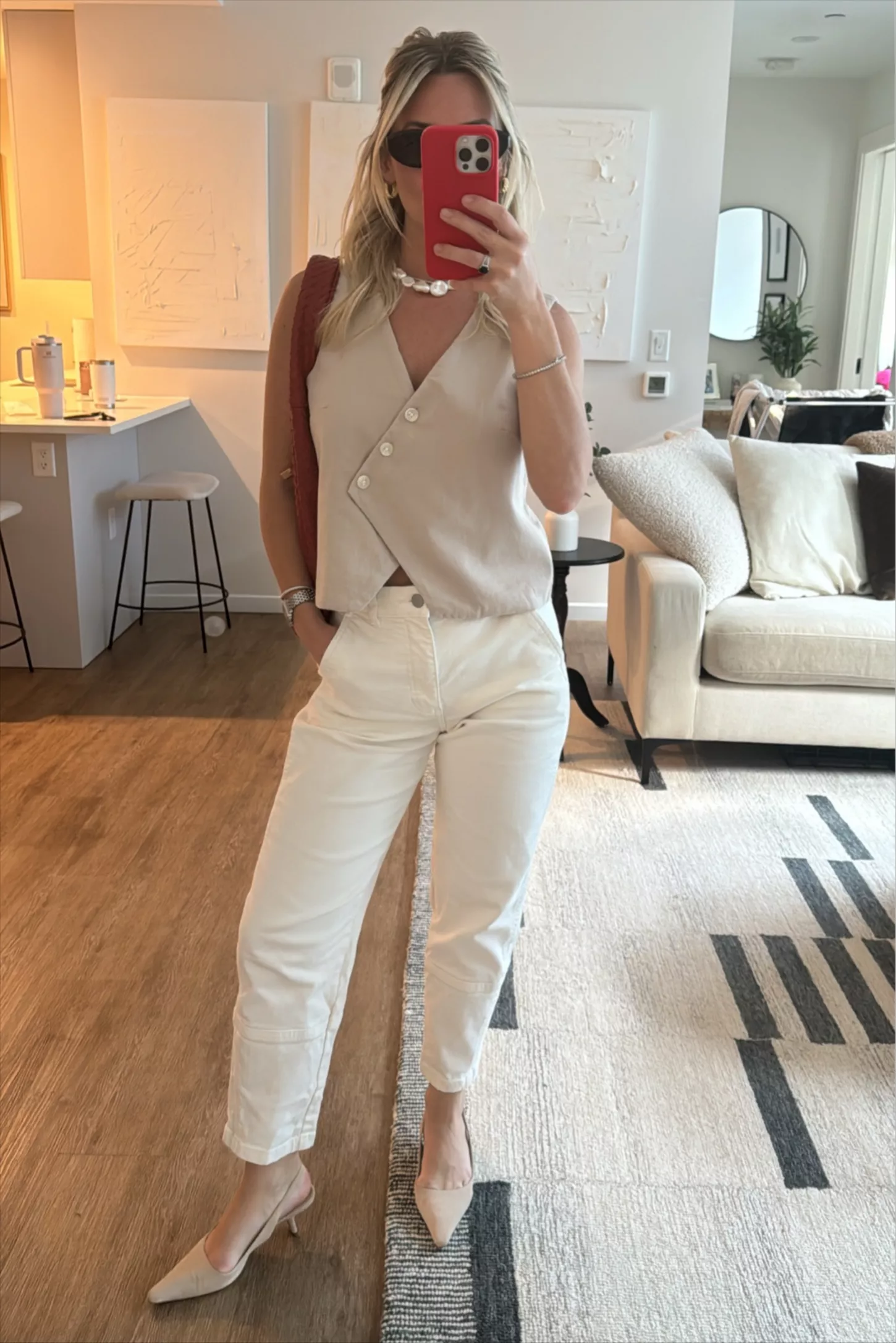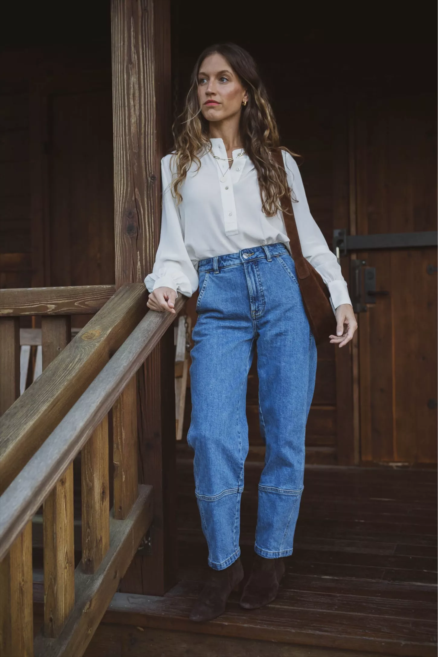 Fit: High-rise. Slim fit through hips. Relaxed barrel leg. Tapered and cropped at the ankle.